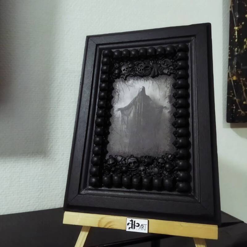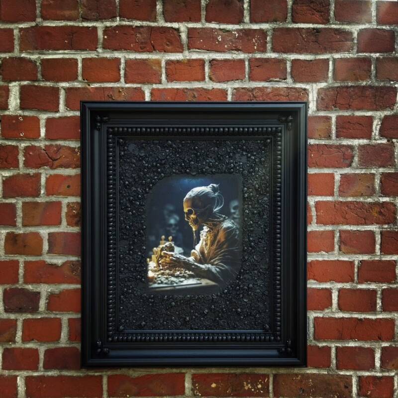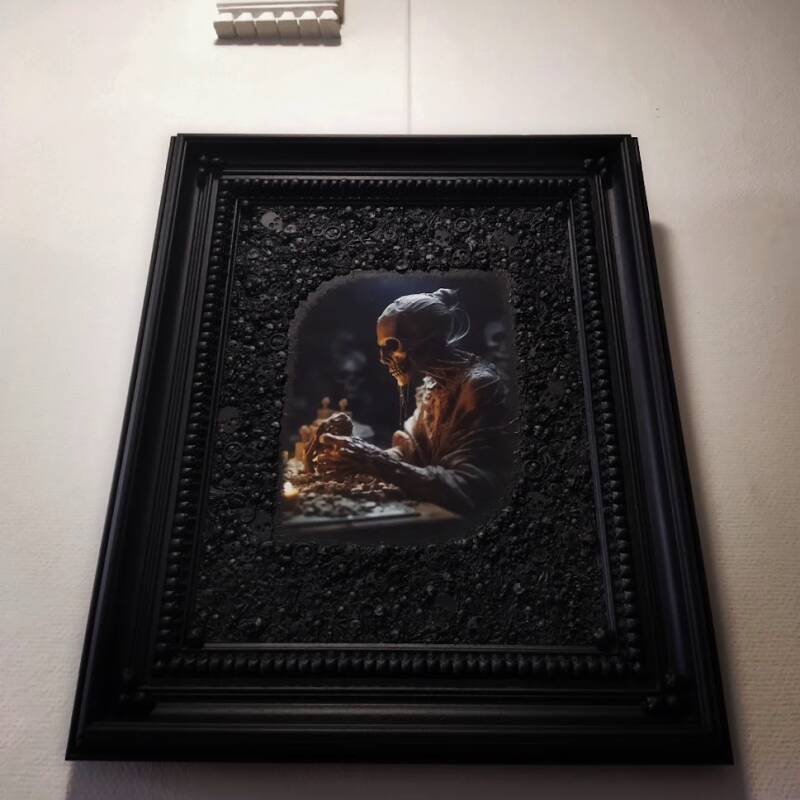 RESTORED BAROK FRAME / MINIATURE SKULLS / GALLERY GRADE ART PRINT